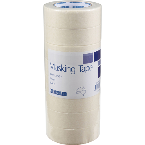 Cumberland masking tape great for general purpose use, easily removable. Quality masking tapes for everyday purposes. White tape. 145 Micron. Pack of 6, shrink wrapped