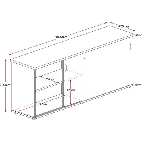 Rapid Worker Credenza Sliding Doors 730Hx1800Wx450D Cherry and Ironstone 502313 In Stock Low Stock Low Stock Please See Attributes
