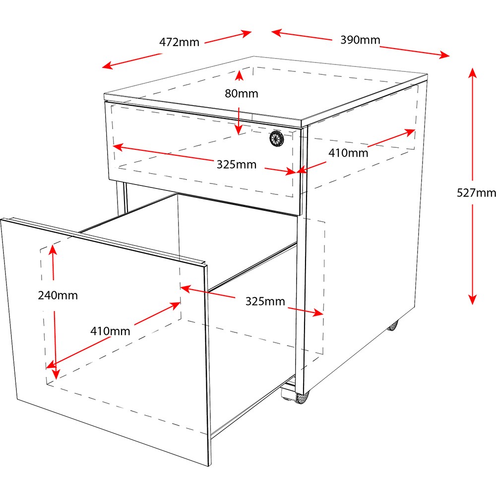 Low height mobile pedestal to fit under height adjustable desks. 1 pen or stationery drawer and 1 filing drawer. Ball bearing runners. 4 x castors, 5th wheel on bottom drawer for added stability. 0.7mm steel gauge. Lockable drawers, master key locking series. 10 Year Manufacturer's Warranty. Delivery, installation and assembly charges may apply to furniture. Please enquire to confirm.