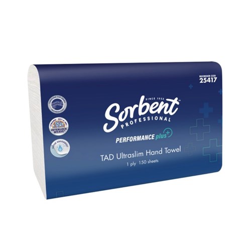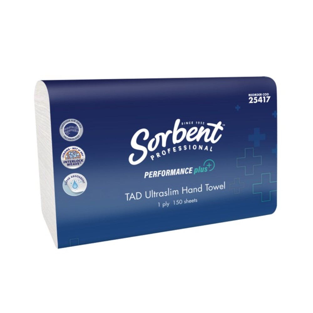 • Sorbent Pro Performance Plus TAD Ultraslim Hand Towel 1 Ply 150 Sheets Carton Of 16
