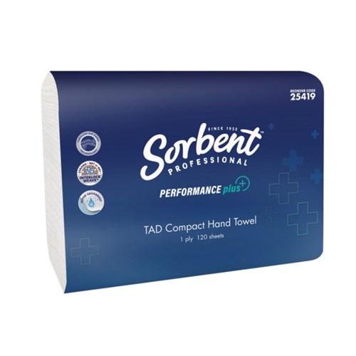 • Sorbent Pro Performance Plus TAD Compact Hand Towel 1 Ply 120 Sheets Carton Of 20