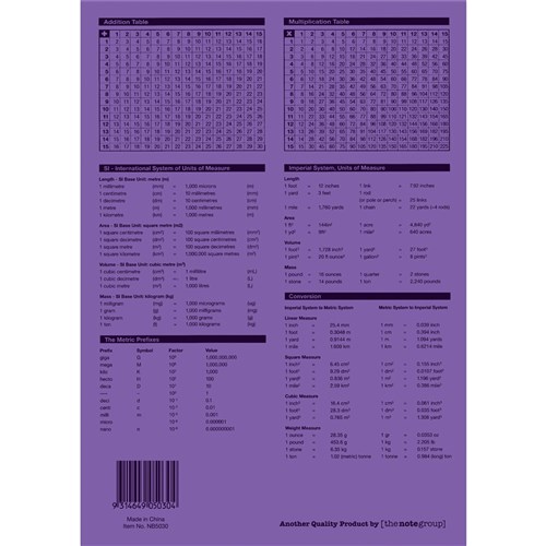 • 4 year calendar, activity page, maths tables & red margin.