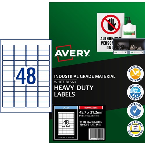 • Avery L4778 White 45.7x21.2mm Safety & Industrial Removable Heavy Duty Labe