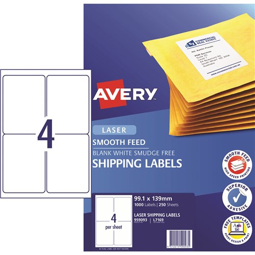Avery Internet Shipping Labels L7169 4L/P/Sht 99.1X139mm 524534 In Stock Low Stock Low Stock Please See Attributes