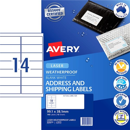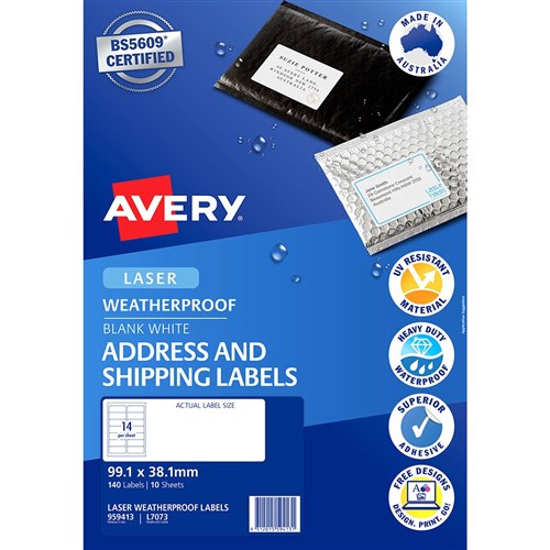 Avery Weather Proof Shipping Laser Labels 199.6 X 289.1mm White 2195235 In Stock Low Stock Low Stock Please See Attributes