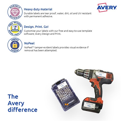 • Customise your labels with Avery Design and Print, available at averyproducts.com.au/print.