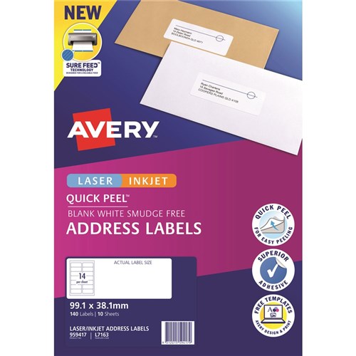 Avery L7163-20 99.1X38.1mm 14 P/Page Laser Address Labels 524470 In Stock Low Stock Low Stock Please See Attributes