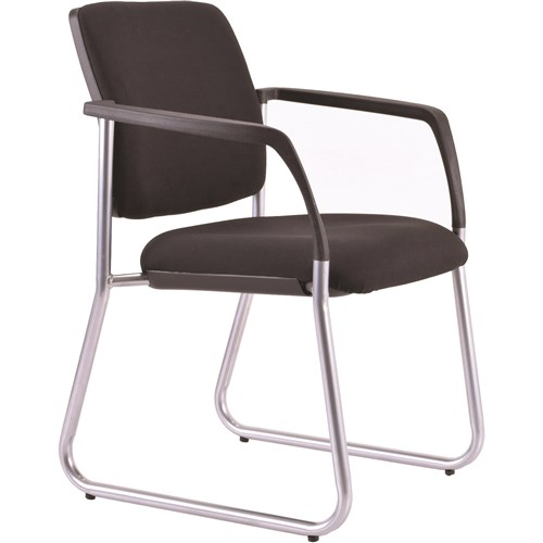 Buro Lindis Sled Base Chair Arms Silver Powdercoated Frame Black Fabric Seat and Back