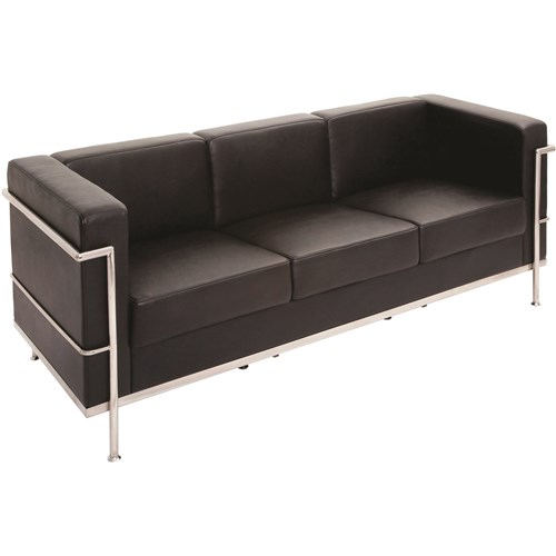 • Enhance your reception area with this timeless design. Three seater arm chair with chrome frame and feet and upholstered in cleanable black PU.