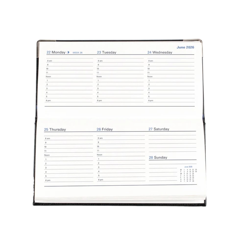 • Collins 2026 Management Slimline Week To Open Landscape Black Bonded Leather Diary