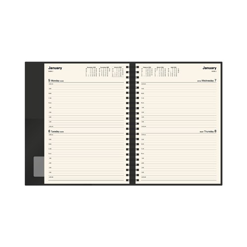 • Printed on a subtle cream paper, each dated page layout features a six-month to opening calendar, week numbers, Julian days, as well as both national and international public holidays.