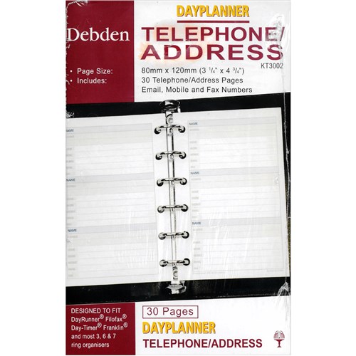 Debden DayPlanner Pocket Tele/Address Refill