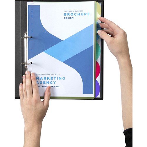 • Create contemporary and professional looking indexes and table of contents. See your titles through your tabs, not on them, keeping your headers in view from anywhere in your presentations.