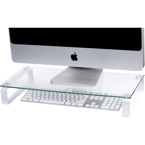 • Esselte® glass monitor stands are modern and stylish They are wide enough to fit your keyboard or laptop dock underneath to maximise desk space.