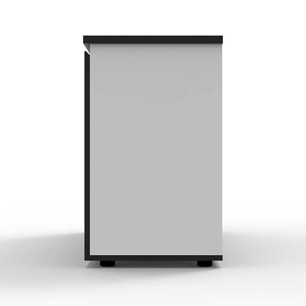 Deluxe Infinity Swing 3 Door Cupboard 1500mm W x 450mm D x 730mm H Shark Nose Feature On Top Door Front For Easy Opening Lockable, Supplied With 2 x Keys Finished In Laminate With Black Rigid Edging Adjustable Levelling Feet