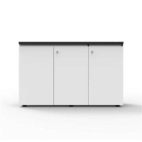 Infinity Swing 3 Door Storage Cupboard 730Hx1500Wx450mmD Natural White with Black Edge