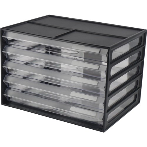 • Italplast A4 Document Cabinet 5 Drawer Black/Clear