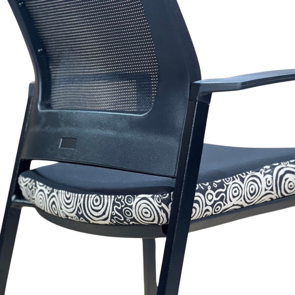 • A unique commercial fabrics designed by Nelly Patterson (Indigenous Artist) combined with K2 Black Fabric to upholster the chair.