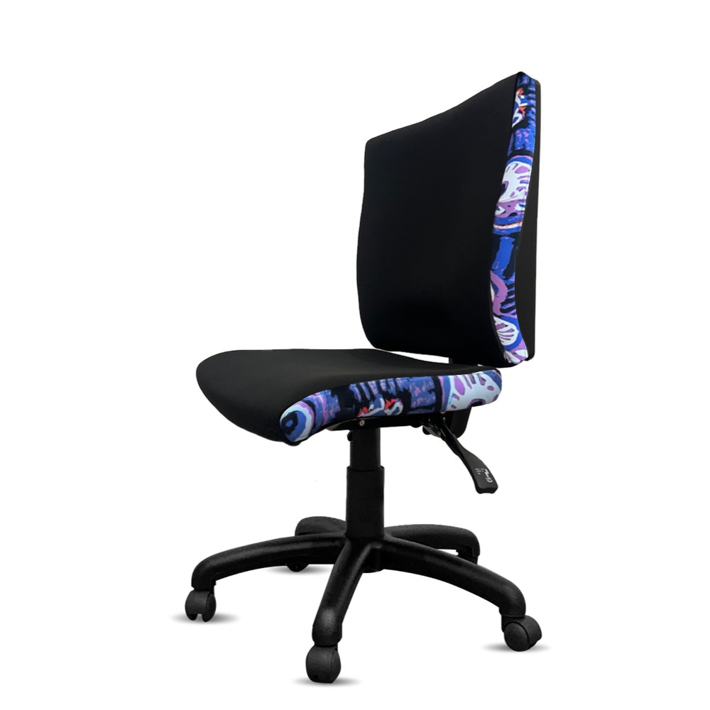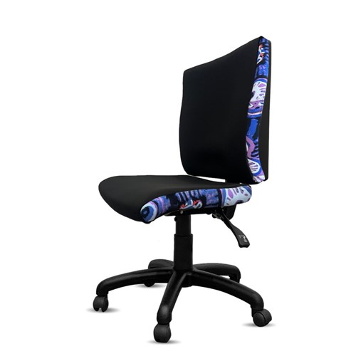 A unique commercial fabrics designed by Murdie Nampijinpa Morris (Indigenous Artist) combined with K2 Black Fabric to upholster the chair. Weight rating: 135kg. Indicated seat hours: 24/7. Seat Dimensions: 510W x 450D x 460-590mmH. Back Height: 500mmW. Back Width:495mm. Heavy duty commercial chair with 3 lever mechanism and ratchet back height adjustment. 5 way 700mm commercial grade nylon base. Heavy duty gas lift cylinder. Moulded seat foam for supreme comfort. Fire retardant contoured moulded foam. Product image for reference only. Design pattern may differ as a result of variations in the art work. 7 Year Years Manufacturer's Warranty. Delivery, installation and assembly charges may apply to furniture. Please enquire to confirm. Optional adjustable armrest available. Refer to product code 3043352.