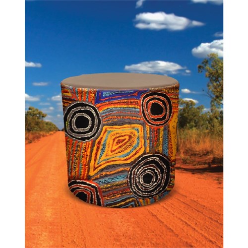 A unique commercial fabrics designed by Mary Napangardi Brown (Indigenous artist) combined with K2 Commercial PU Leather. Weight rating: 120kg. Indicated seat hours: 12 hours. Dimensions: 450 Diameter x 460mmH. Provides flexible seating for open plan areas, reception and education spaces. Concealed feet. Fire retardant contoured moulded foam. Available in different size on request. Product image for reference only. Design pattern may differ as a result of variations in the art work. 5 Years Manufacturer's Warranty. Delivery, installation and assembly charges may apply to furniture. Please enquire to confirm.