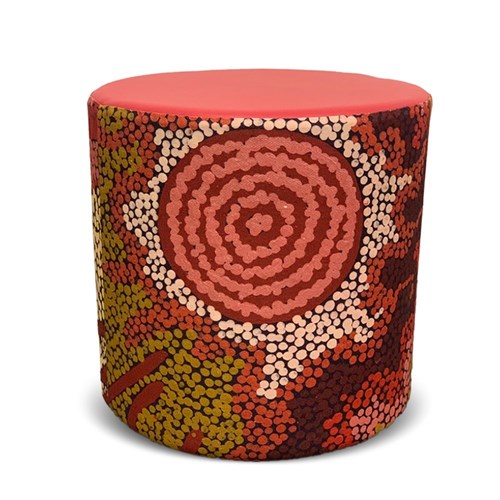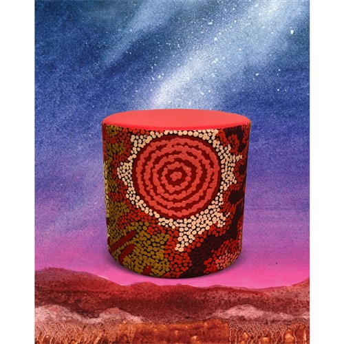 A unique commercial fabrics designed by Damien and Yilpi Marks (Indigenous artist) combined with K2 Commercial PU Leather. Weight rating: 120kg. Indicated seat hours: 12 hours. Dimensions: 450 Diameter x 460mmH. Provides flexible seating for open plan areas, reception and education spaces. Concealed feet. Fire retardant contoured moulded foam. Available in different size on request. Product image for reference only. Design pattern may differ as a result of variations in the art work. 5 Years Manufacturer's Warranty. Delivery, installation and assembly charges may apply to furniture. Please enquire to confirm.