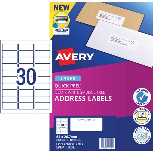 Label Laser Avery Address L7158-100 64X26.7mm 30 P/Page