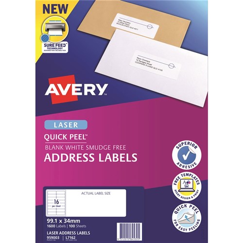 Label Laser Avery Address L7162-20 99.1X34mm 16 P/Page 524471 In Stock Low Stock Low Stock Please See Attributes