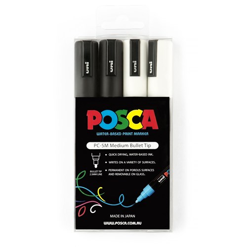 Posca PC-5M Black & White 2.5mm Medium Bullet Paint Marker