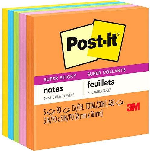 Post-it 654-5SSJOY Super Sticky Notes 76 x 76mm Summer Joy 3021990 In Stock Low Stock Low Stock Please See Attributes
