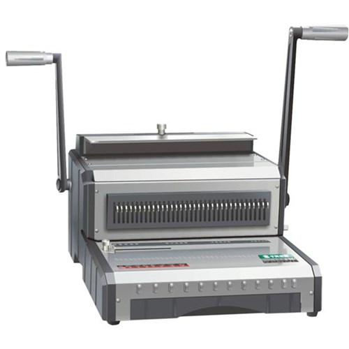 Punches up to 25 sheets. Binds up to 280 sheets. Adjustable margin depth for holes. Disengagable Punches. 2:1 pitch wire. All Metal construction. Separate handle to close wires. 24 month warranty.