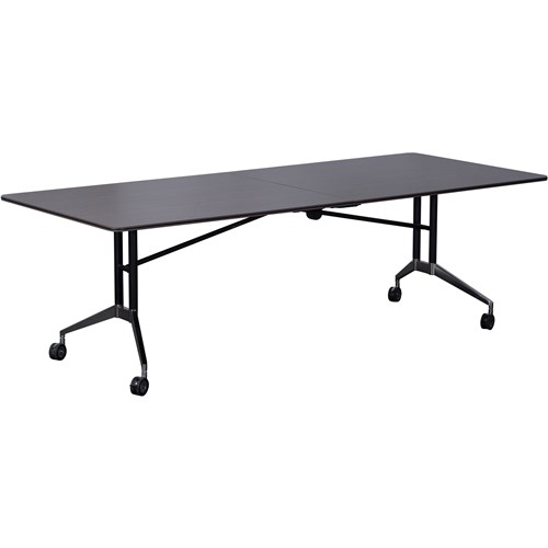 Rapid Edge Folding Boardroom Table Includes 2 X Table Links 2400Mm W X 1000Mm D X 743Mm H E1 Rated 18Mm T Worksurface With Stylish Rubber Strip Edging Polish Aluminium Foot - Black P/C Frame Heavy Duty Lockable Castors Quick Release Flip Mechanism 5 years