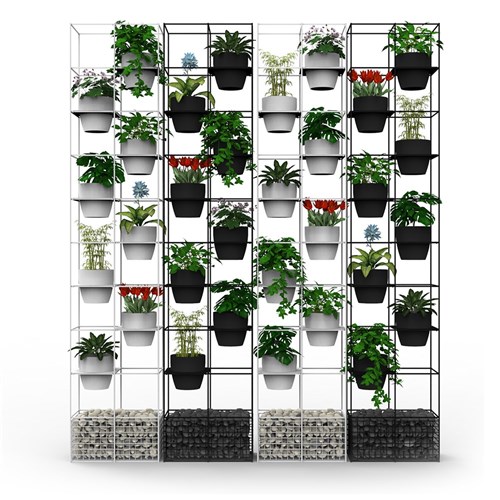 Rapid Bloom Vertical Garden White Includes 8 x 150mm Dia White Pots and 20Kgs Of Polished White Stones Manufactured With Concealed Wall & Floor Mounting provisions Plants Not Included