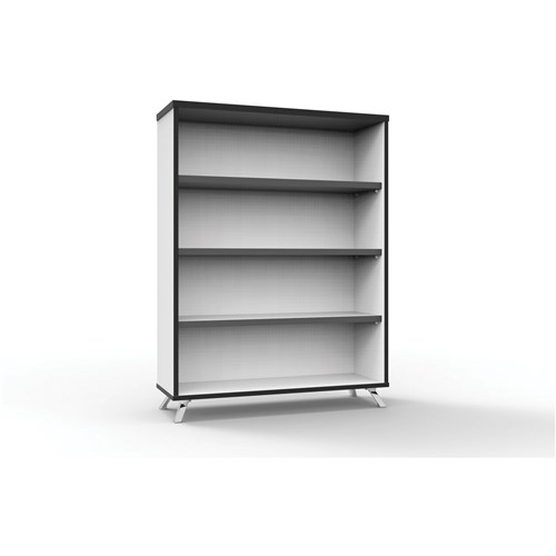 Rapid Infinity Bookcase 1200mm H x 900mm W x 315mm D Includes 4 x 25mm T Adjustable Shelves Finished In Laminate, Featuring Black Edging Polished Aluminium Tapered Legs E1 Rated Melamine Board 5 Year Manufacturer's Warranty.