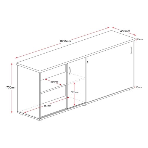 Rapid Worker Credenza Sliding Doors 730Hx1800Wx450D Cherry and Ironstone