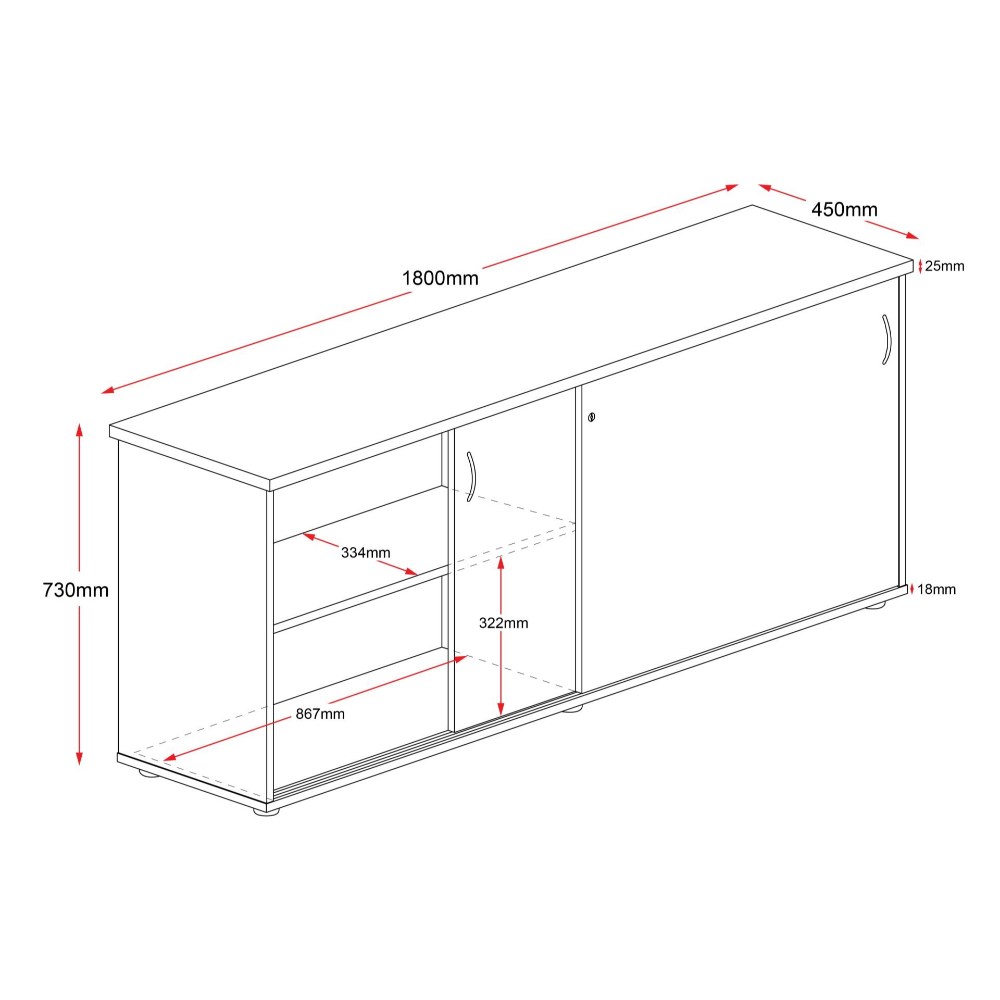 • Rapid Worker Credenza Sliding Doors 730Hx1800Wx450D Cherry and Ironstone