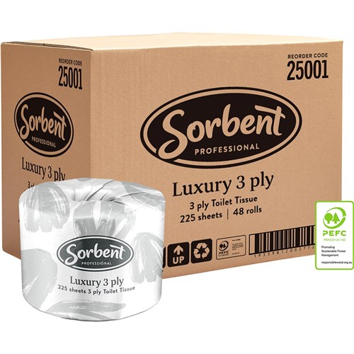 Sorbent Professional Luxury 3 Ply 225 Sheets Toilet Tissue Rolls