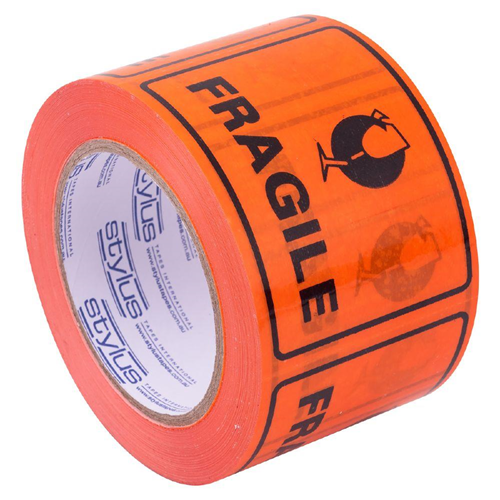 SP500 Fragile Label Tape BL/OR 75mmx50m