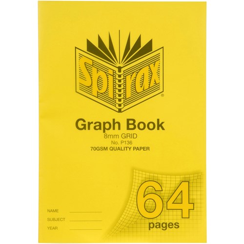 Spirax Polypropylene(PP) Grapgh Books include a sturdy binding to ensure the pages do not come loose. Available with 48, 64, 96 & 128 Pages A4 avaliable in 5mm, 8mm & 10mm rulings.