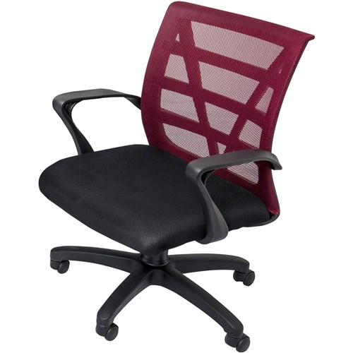 Vienna Mesh Medium Back Office Chair With Arms Black Fabric Seat Red Mesh Back