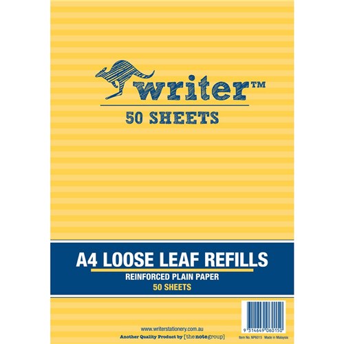 • Writer Binder Refills A4 Plain Reinforced Pack of 50