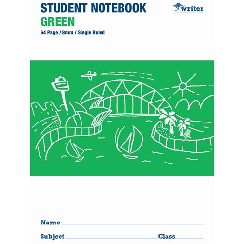 • Writer Student Notebook 175x250mm 8mm Single Ruled 64 Pages Green