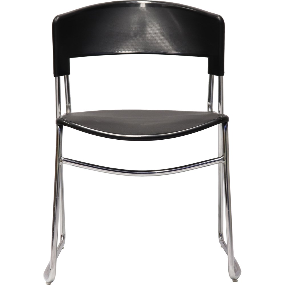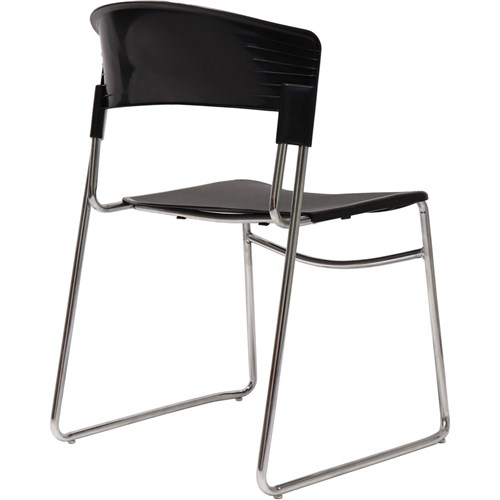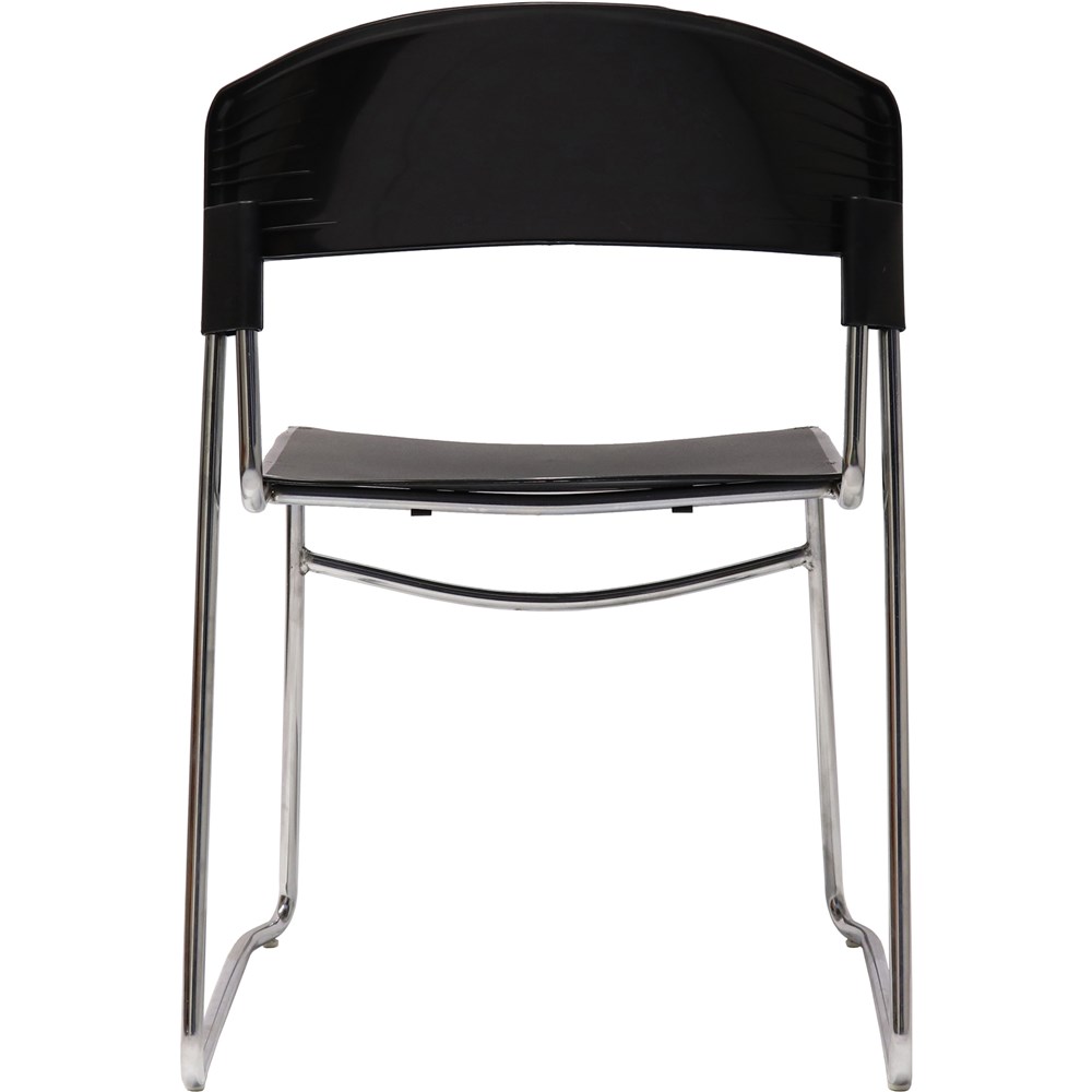 • Zola Stackable Meeting Chair Chrome Sled Base Black Polypropylene Seat and Back